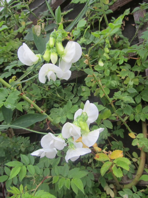 | Ruusunätkelmää ruusun joukossa, samanlainen kuin Tuoksuherne, muttei tuoksu, on monivuotinen köynnös |
