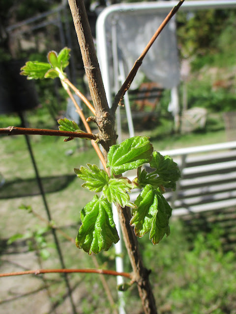 Myöhään viime syksynä siirsin mongolianvaahteran kivikosta toiselle puolelle pihaa. Luulin, että se kuoli, mutta onneksi ei. Tämä on pieni vartettu versio.